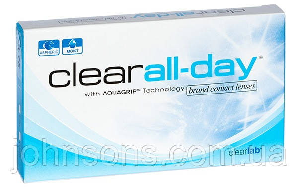 Показати оптові ціниМи раді представити вам асферичні гідрогелеві контактні лінзи Clear all day! Це інноваційна модель, призначена для щоденного носіння та щомісячної заміни. Лінзи вирізняються гарною змочуванням поверхні та високим вологоощадністю. Купити КЛ завжди можна на сайті нашої компанії з доставкою по всій країні!